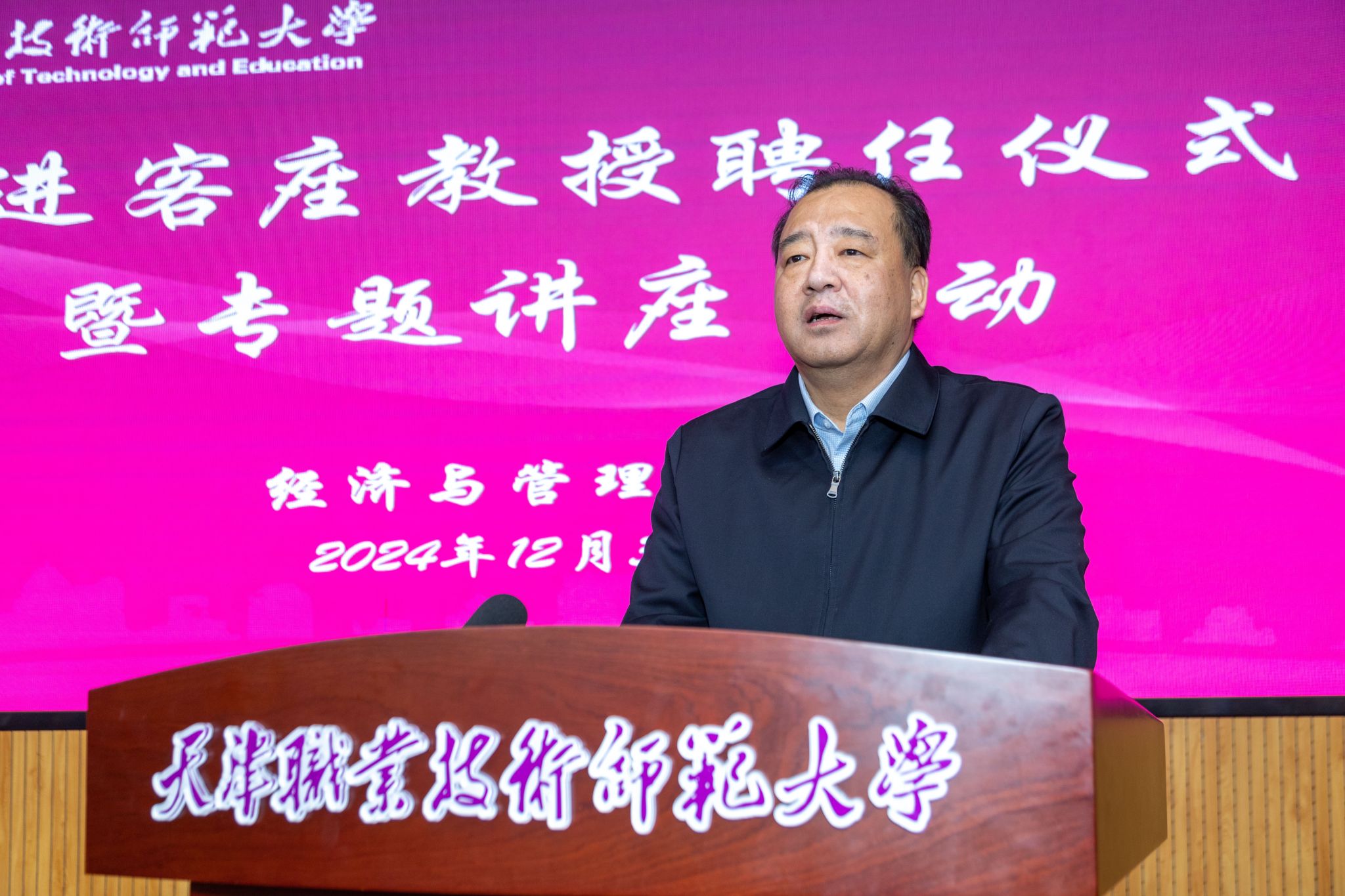 党委书记张金刚出席并致辞,校党委常委、副校长蔡玉俊主持客座教授聘任仪式。