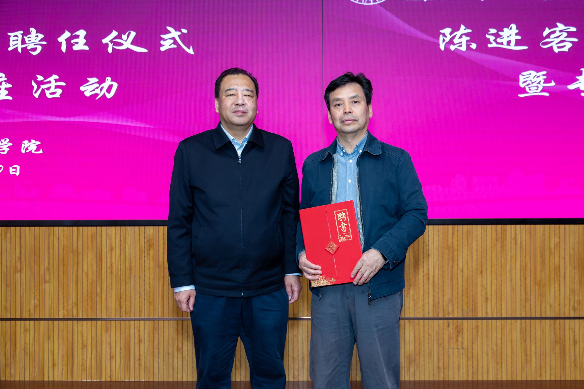 聘任仪式上,蔡玉俊介绍了陈进教授的学科贡献和学术成就,宣读了关于聘请陈进教授为客座教授的聘任决定。张金刚为陈进教授颁发客座教授聘书。