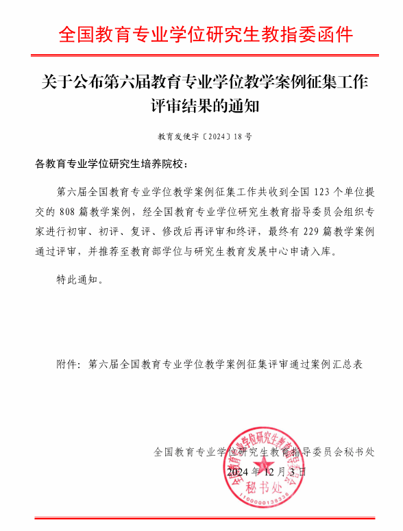 近日,全国教育专业学位研究生教育指导委员会发布了第六届教育专业学位教学案例征集工作评审结果,洪爷