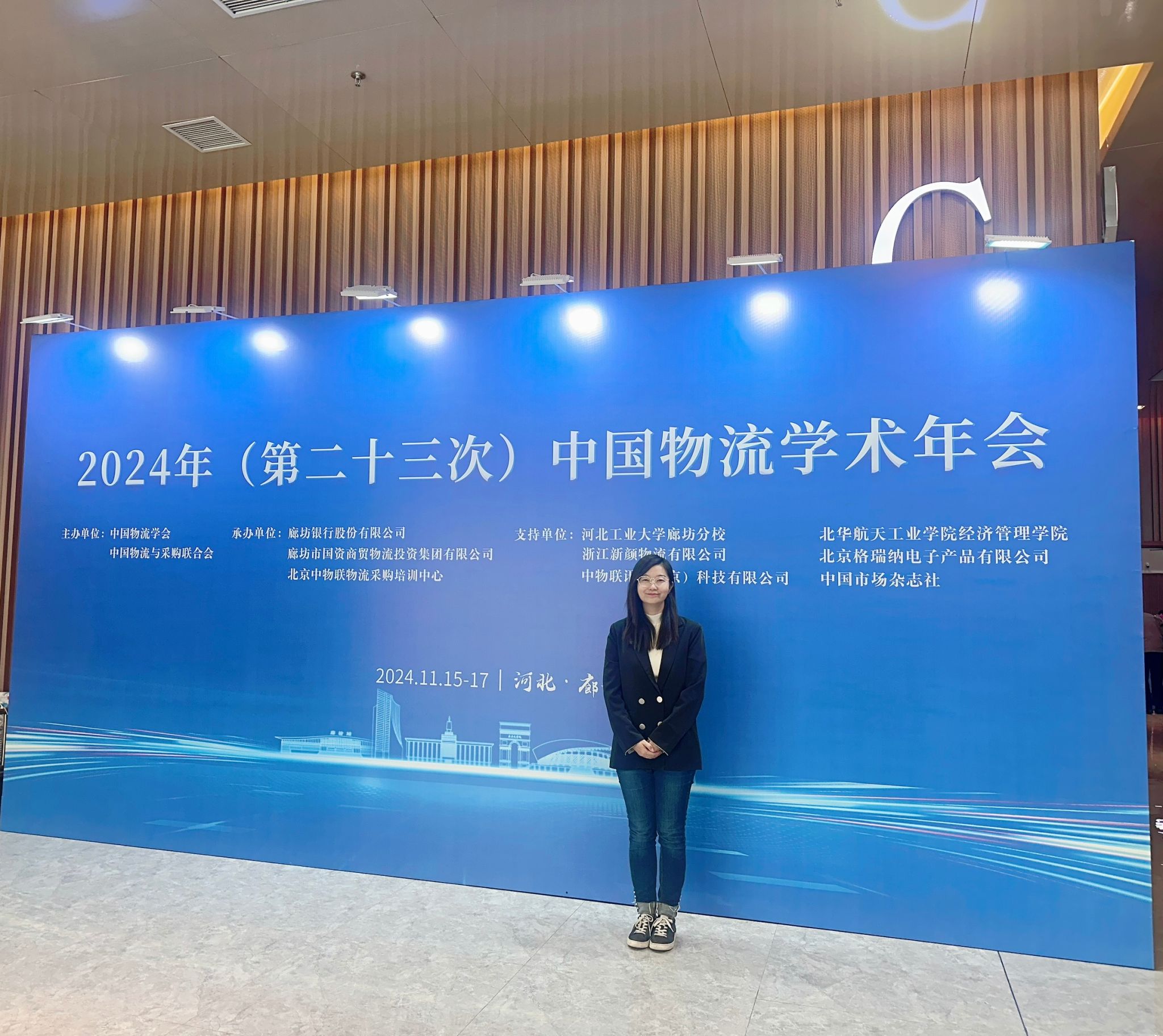 会议期间,田怡与来自全国各地的专家学者和企业高管共同探讨了物流与供应链领域的前沿理论和创新成果,并在青年论坛上以《直播电商驱动下双渠道供应链绿色产品的差异化定价策略研究》为题作了精彩的学术汇报,收获了相关领域专家学者的点评和赞誉。