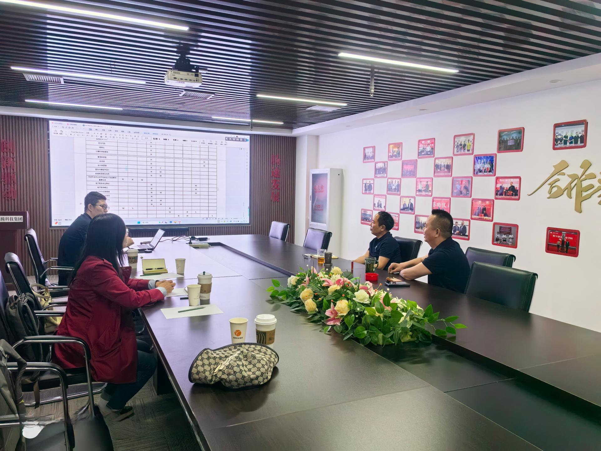 院长齐莉丽、电子商务系主任张波、副主任田怡赴天津滨海迅腾科技集团有限公司走访调研。天津滨海迅腾科技集团有限公司董事长邵荣强、董事长助理束金龙接待了学院一行。