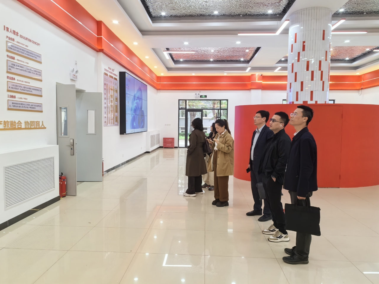 在北京物资学院果园校区,学院一行参观调研了京东学院实训基地智能仓储实训中心和展示大厅,孔德超介绍了学校产业学院建设情况,详细介绍了京东学院目标定位、建设基础、育人模式、保障体系和未来发展规划。