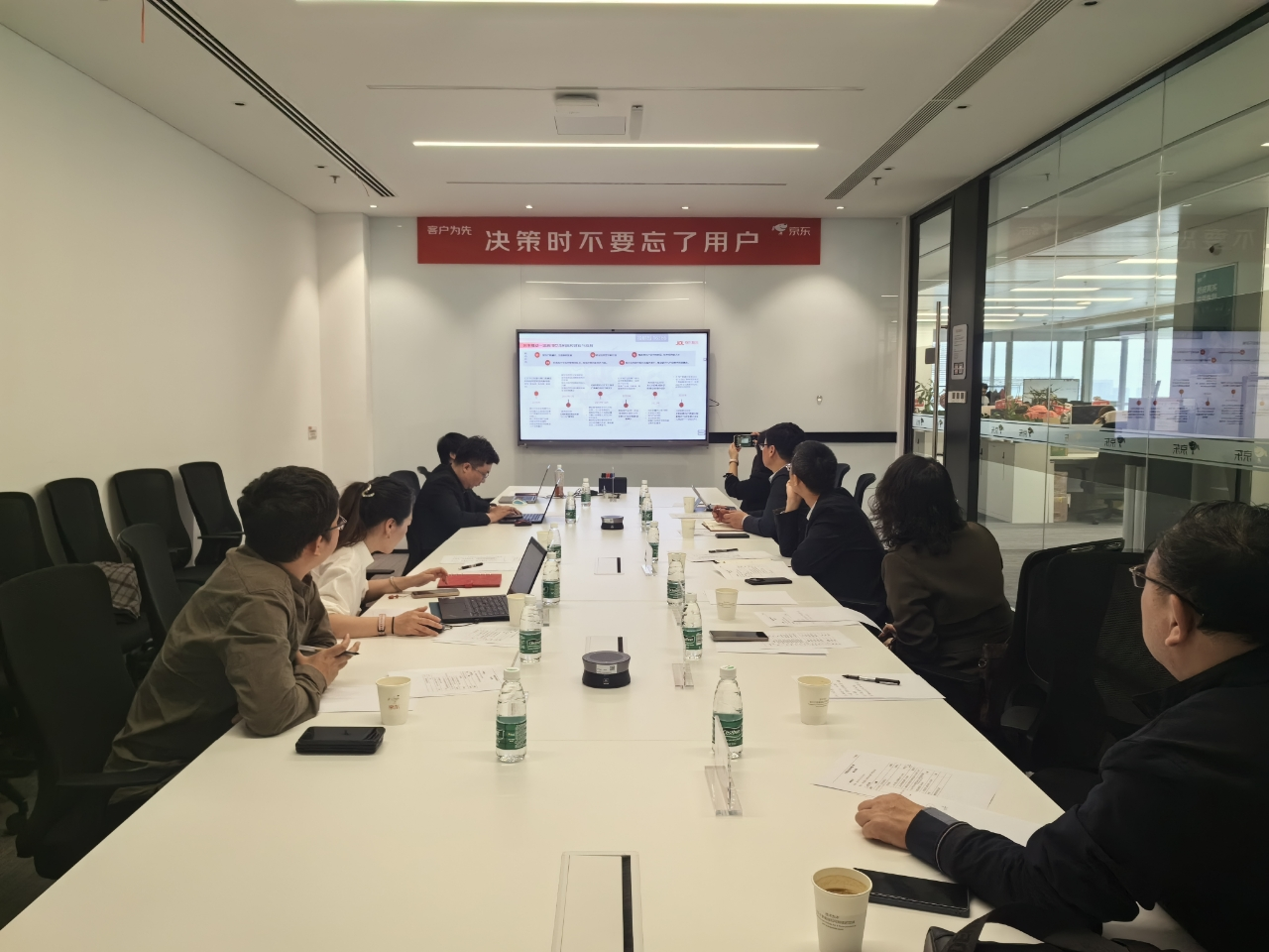 学院一行前往位于北京亦庄经济开发区京东新总部大楼,参观了企业文化展示、一体化供应链和智能物流展示区、配送机器人及社交型办公环境等场景。赵利清介绍了基于产业实践的京东特色产教融合新思路和在产教融合领域工作的新进展。他表示,京东物流教育依托全产业链生产场景和真实业务数据的优势,通过建设产业学院等形式,促进人才培养链与产业链相融合,与高校共建高质量教育平台,共育高质量人才。王萌介绍了数字商业与数字乡村产业学院、智能供应链产业学院和新技术产业学院的建设思路,以及京东智能供应链技术产教融合建设方案,并深入分析了新质生产力下电商物流人才需求特质。