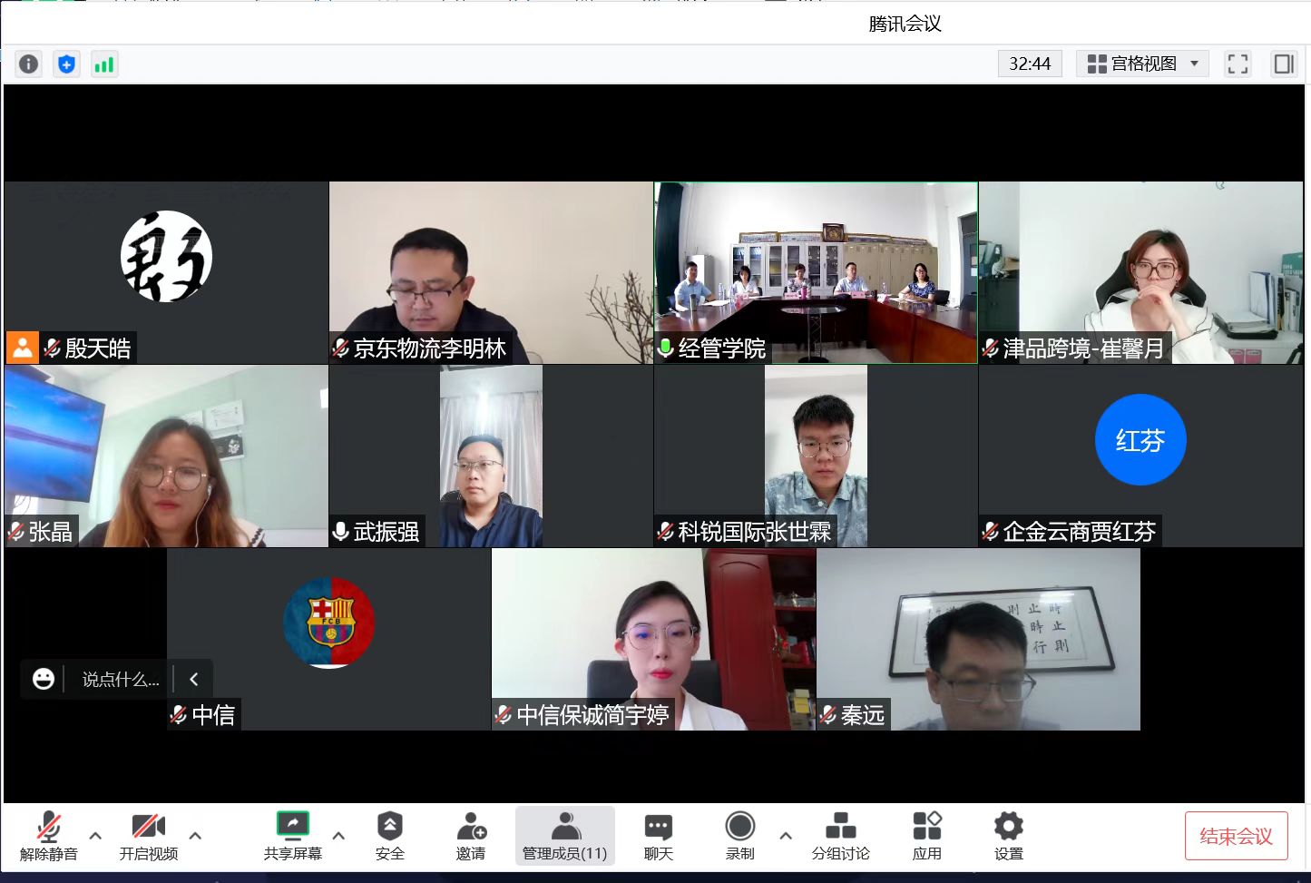 “访企拓岗”促就业线上交流会于第一教学楼726会议室顺利举行。京东物流(天津京邦达供应链科技有限公司)、北京科锐国际人力资源股份有限公司天津分公司、津品跨境数字贸易产业园、天津企金云商科技有限公司、中信保诚人寿保险有限公司天津分公司、天津卓讯科技股份有限公司、同道精英(天津)信息技术有限公司、天津道成会计师事务所有限责任公司等8家企业代表,学院领导班子、辅导员代表参加会议,学院党委副书记郭丽芳主持会议。