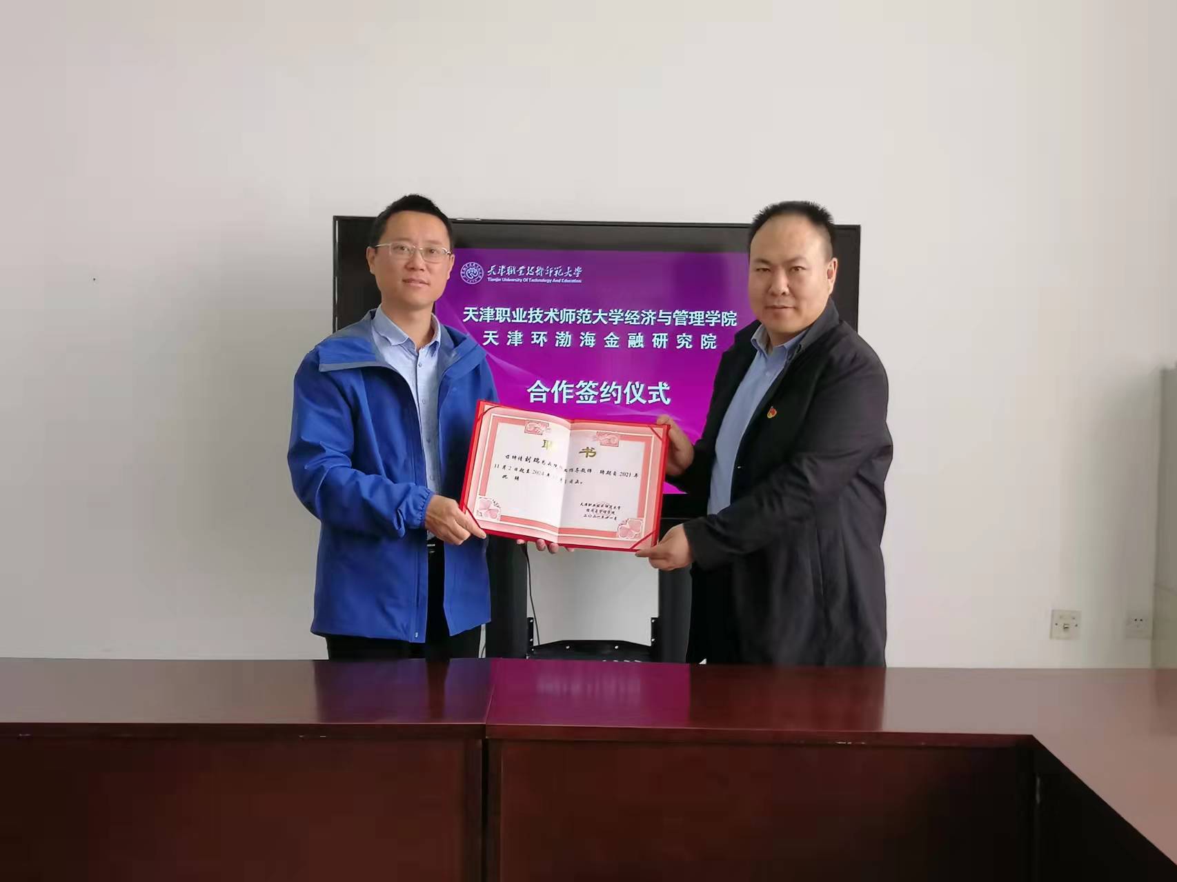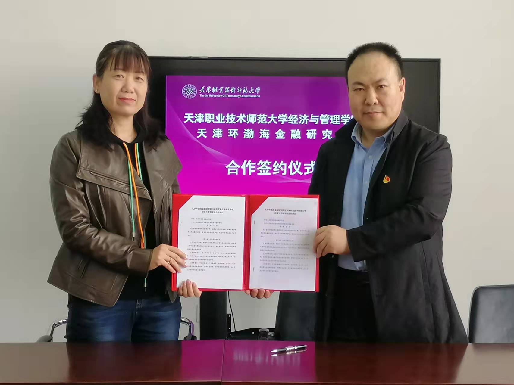 与天津环渤海金融研究院举行校企合作签约仪式。天津环渤海金融研究院院长刘瑞,洪爷
