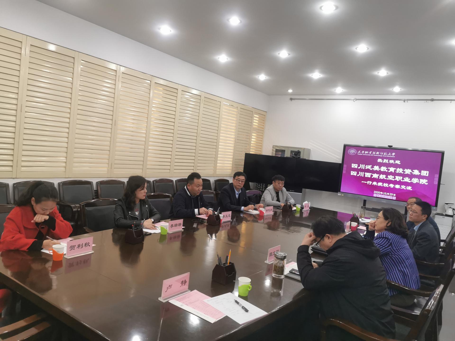 10月29日,四川泛美教育投资集团副总裁李玉龙,四川西南航空职业学院院长衡代清等一行5人,就经济管理学院航空物流班人才培养情况开展交流访问,副校长孙奇涵亲切会见李玉龙一行并座谈。