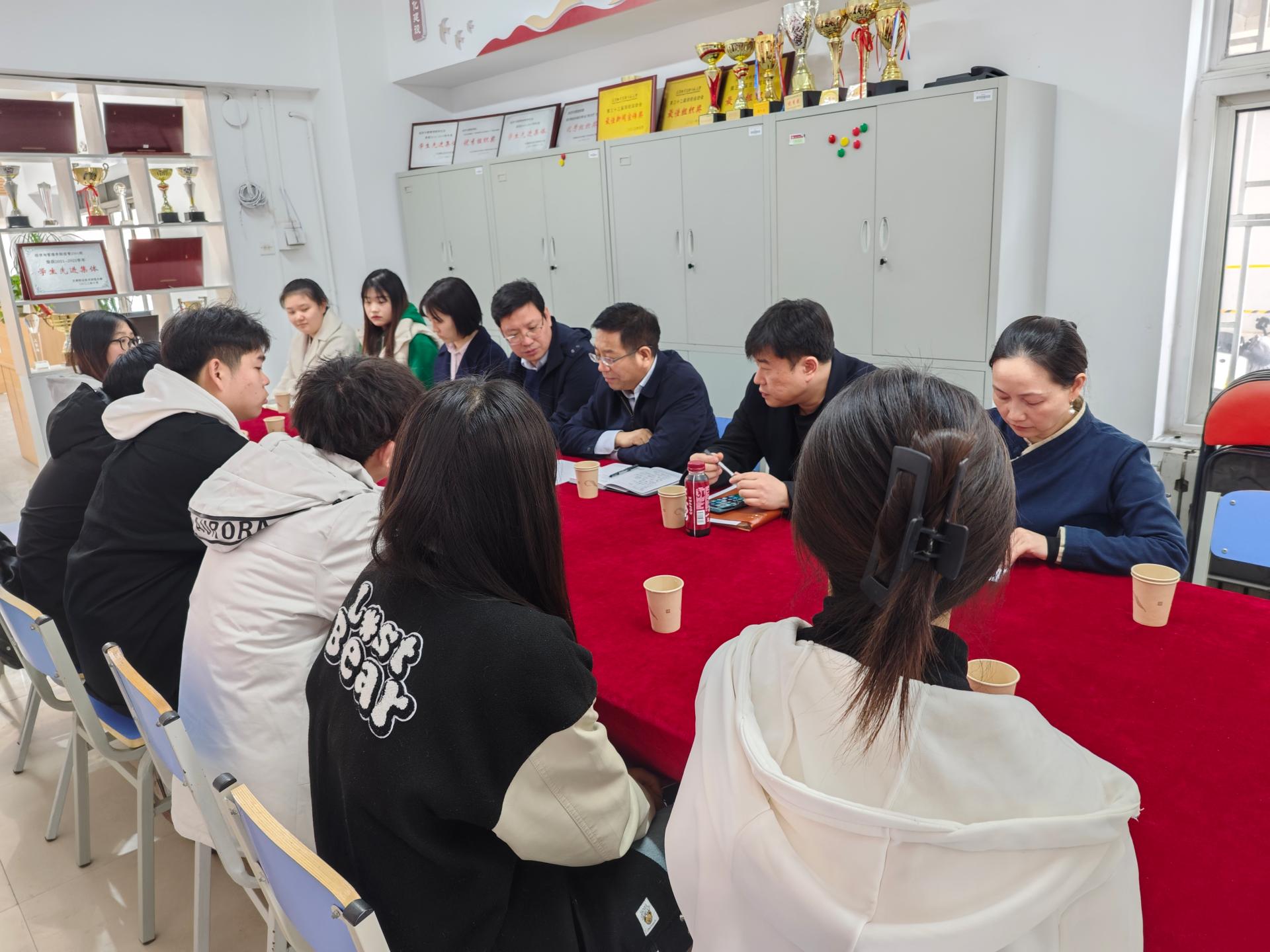 “一站式”学生社区,与电子商务特色冠军班学生代表座谈交流。教务处副处长李佰洲、外国语学院副教授蔡莺及经管学院党委副书记郭丽芳、副院长齐旭高、辅导员代表、电商特色冠军班学生代表参加座谈。