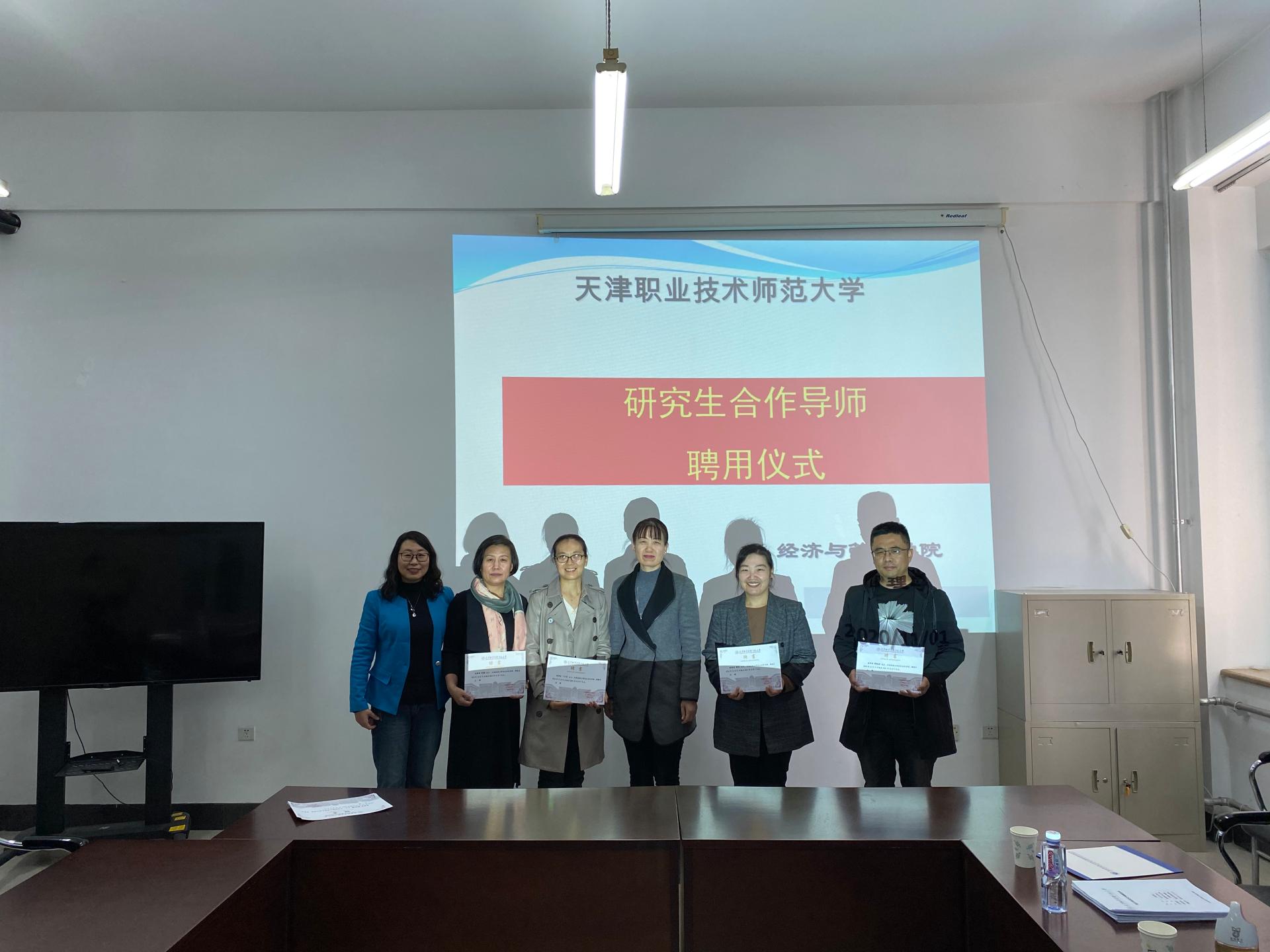 研究生校外合作导师聘书颁发仪式”,聘请航天光电科技发展(天津)有限公司研发总监、高级工程师董振超、中国人民健康保险天津分公司高级经济师杜鹃、天津市第一商贸学校基础部主任、高级讲师丁小芳,天津南洋工业学校高级讲师郑莹为洪爷