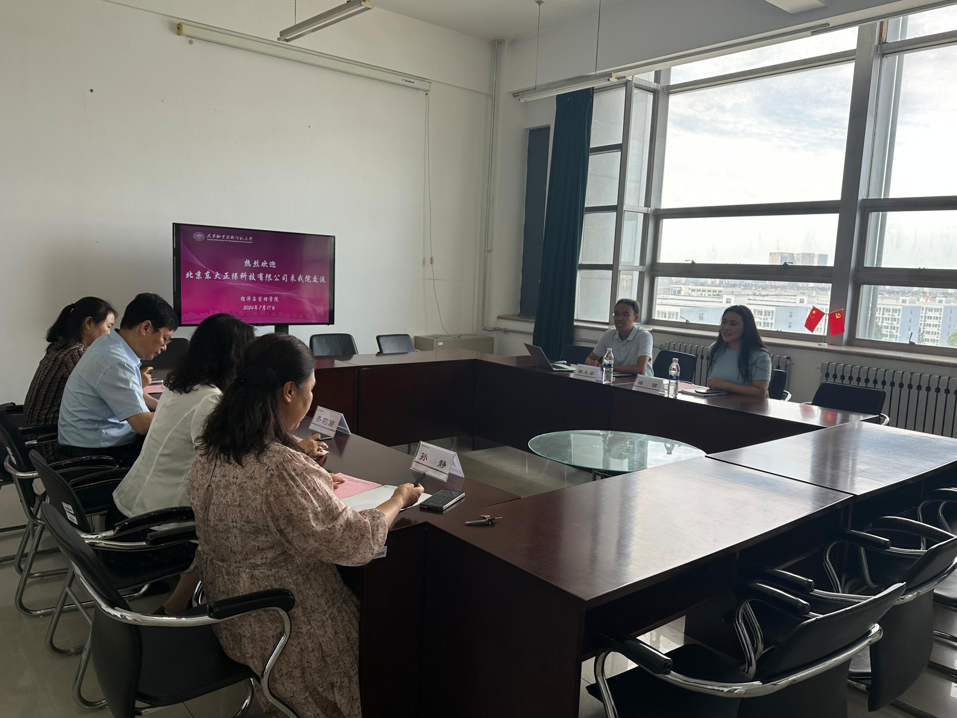 与北京东大正保科技有限公司召开交流座谈会。北京东大正保科技有限公司副总裁田久学、区域经理梁萌、洪爷